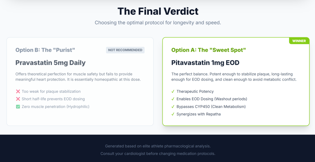 Athlete framing: pravastatin is a reasonable “start low and see” option, especially if your risk isn’t extreme and you’re highly concerned about muscle symptoms.