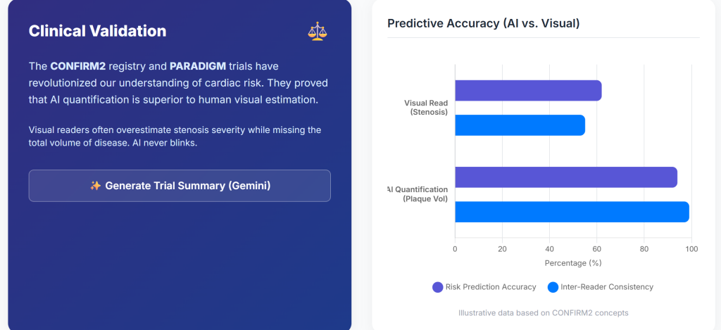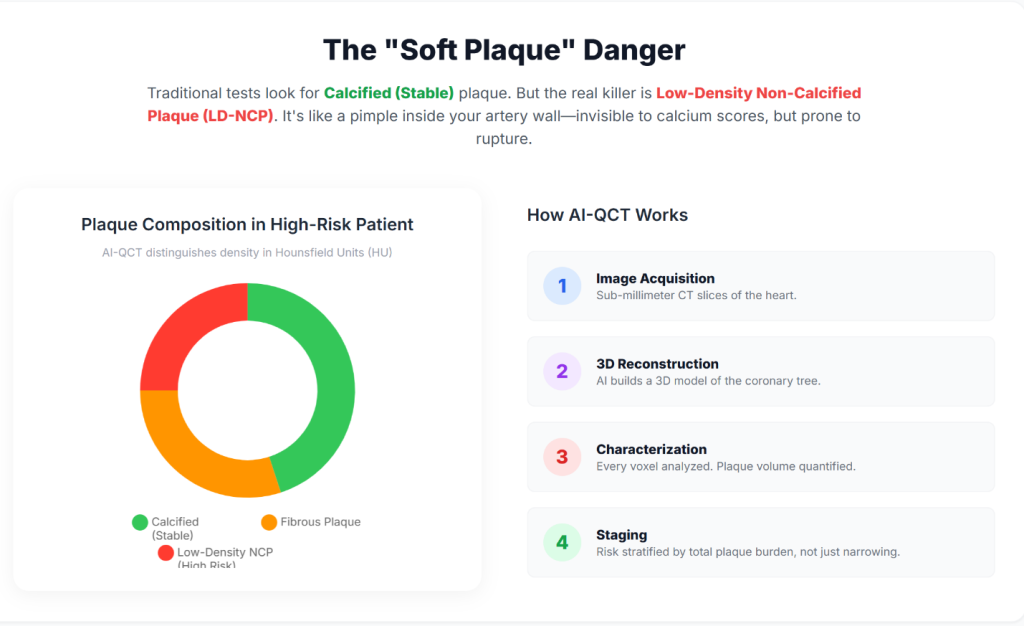 Preventive cardiology is increasingly transitioning toward a biologically informed model that emphasizes plaque burden and composition rather than stenosis severity alone. AI-QCT provides a reproducible, quantitative framework for assessing coronary atherosclerosis before clinical events occur.
